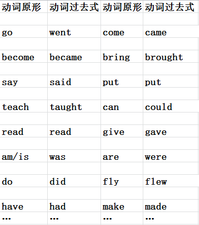 动词原形 动词过去式 动词原形 动词过去式