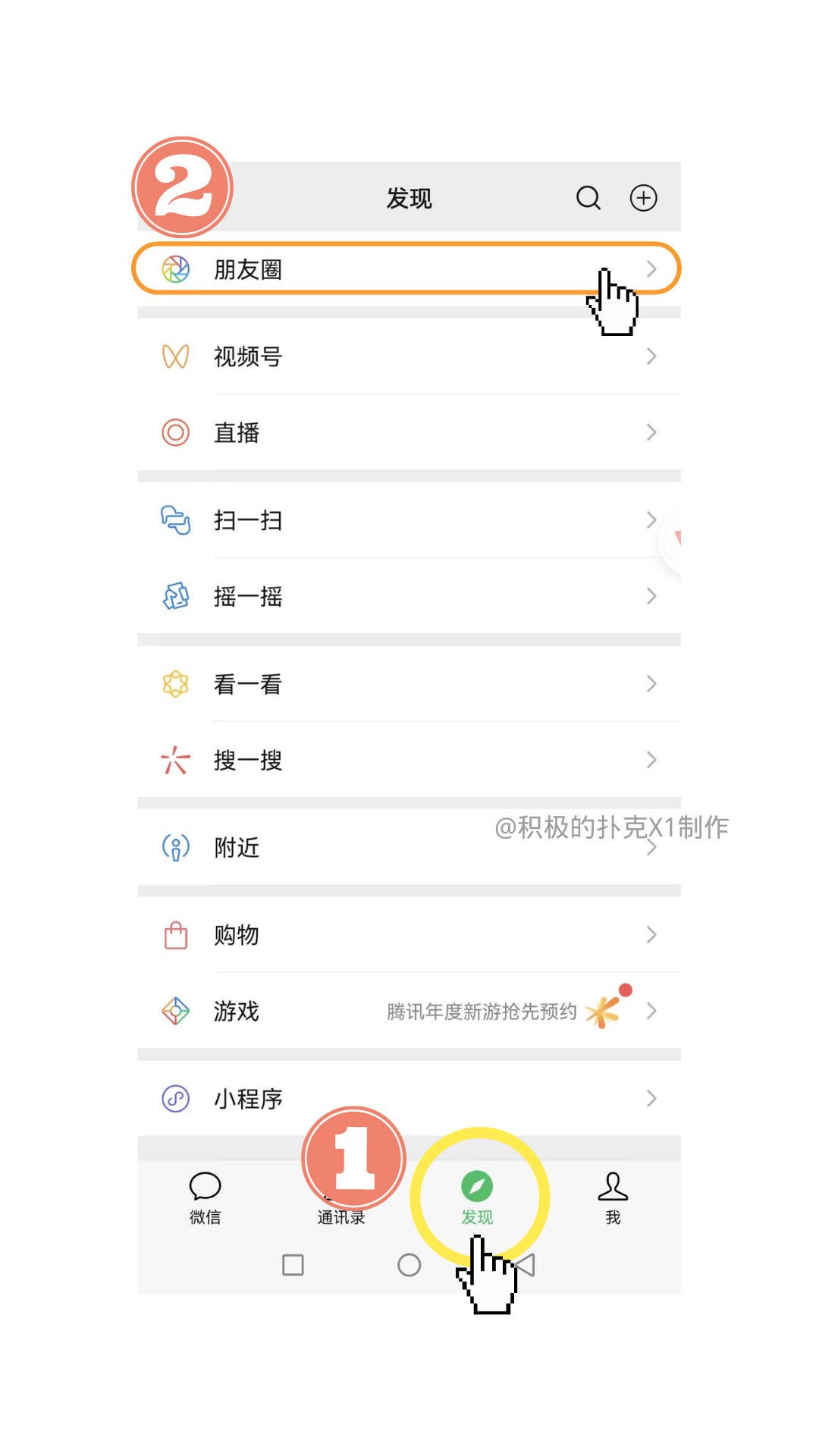 第一步是点击聊天页面最下方的“发现”,变