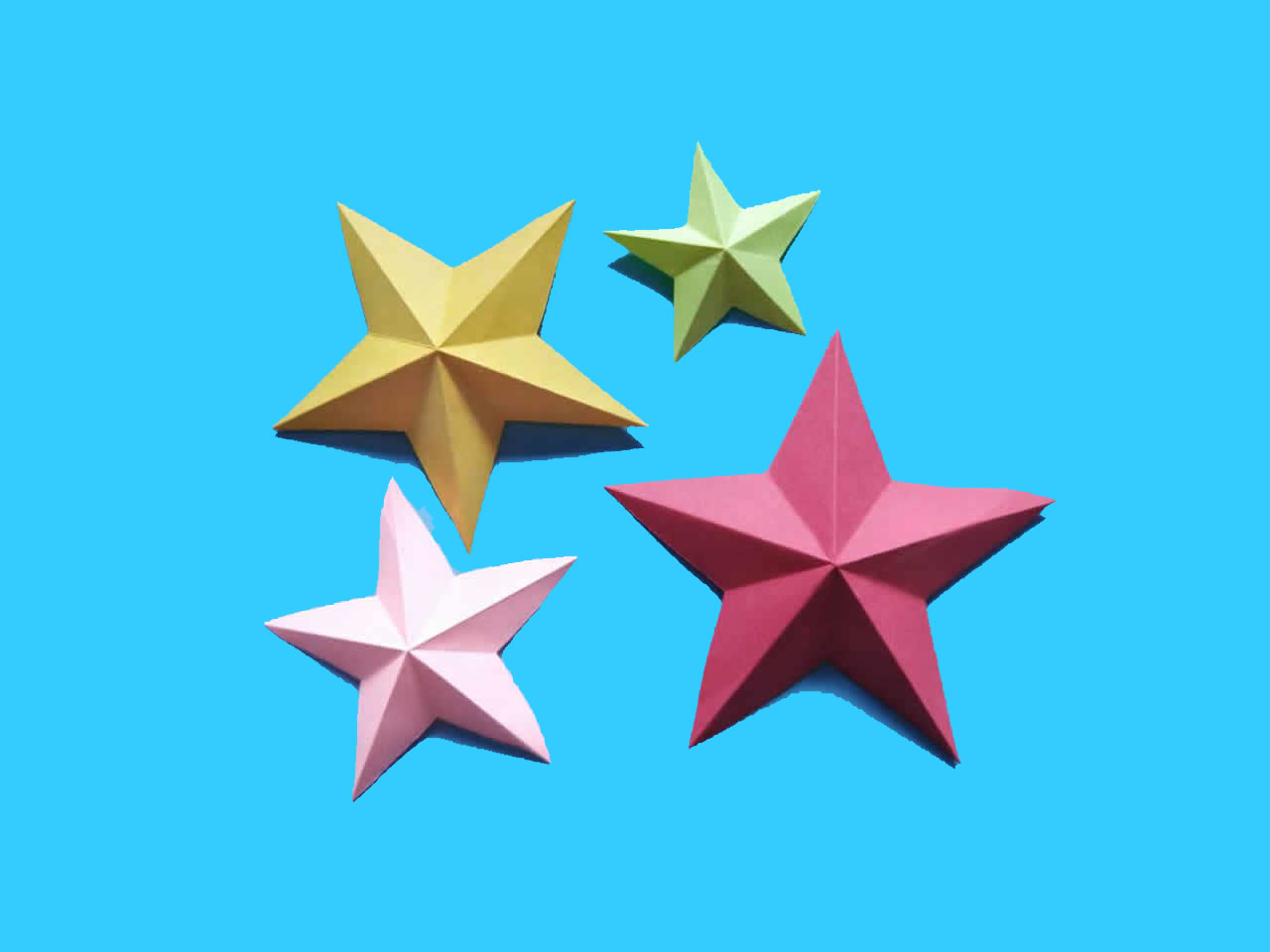 展开后在五个角中间折一下,漂亮的立体五角星就做好了。