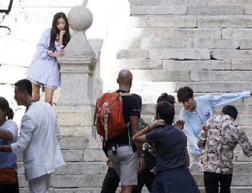 在剧组就公布了三张二人的新剧照,在第一张中刚“粘上”人类的美人鱼全智贤跟着他到处逛,展示出对一切都很新奇的样貌,而第二张则是李敏镐很艰辛地踩单车搭着她,第三张感情升华二人深情对视,CP感十足。