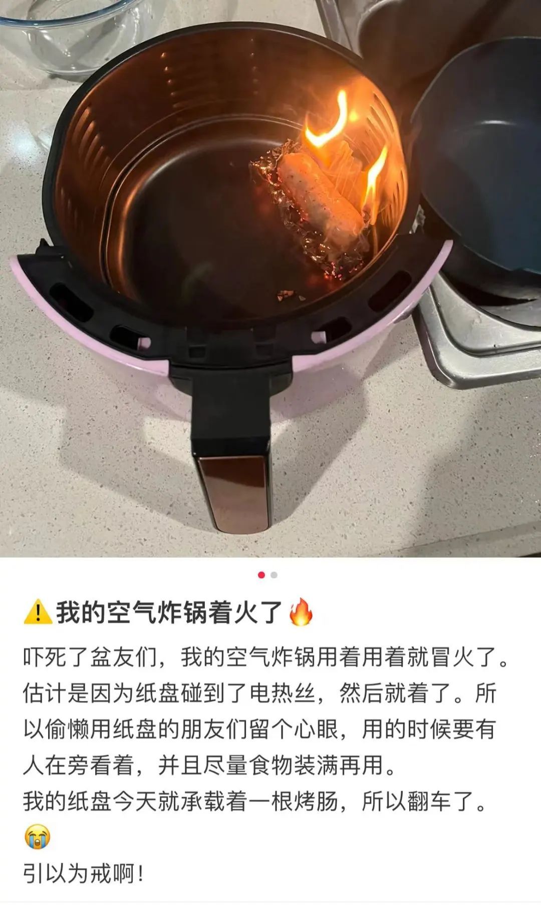 自家的空气炸锅在使用过程中着火