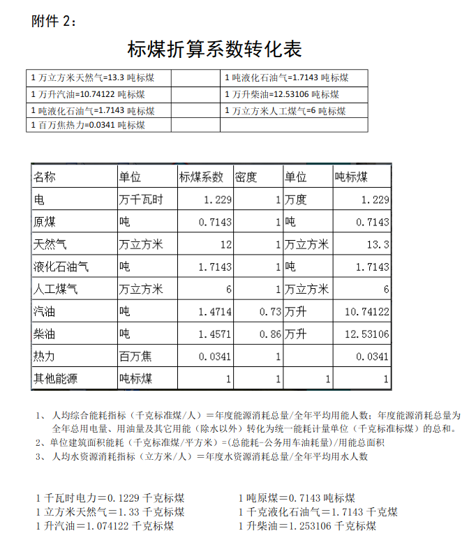 水:1升=0.001立方米(注:水无吨标煤换算)