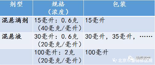 美林(布洛芬)液体制剂规格包装一览: