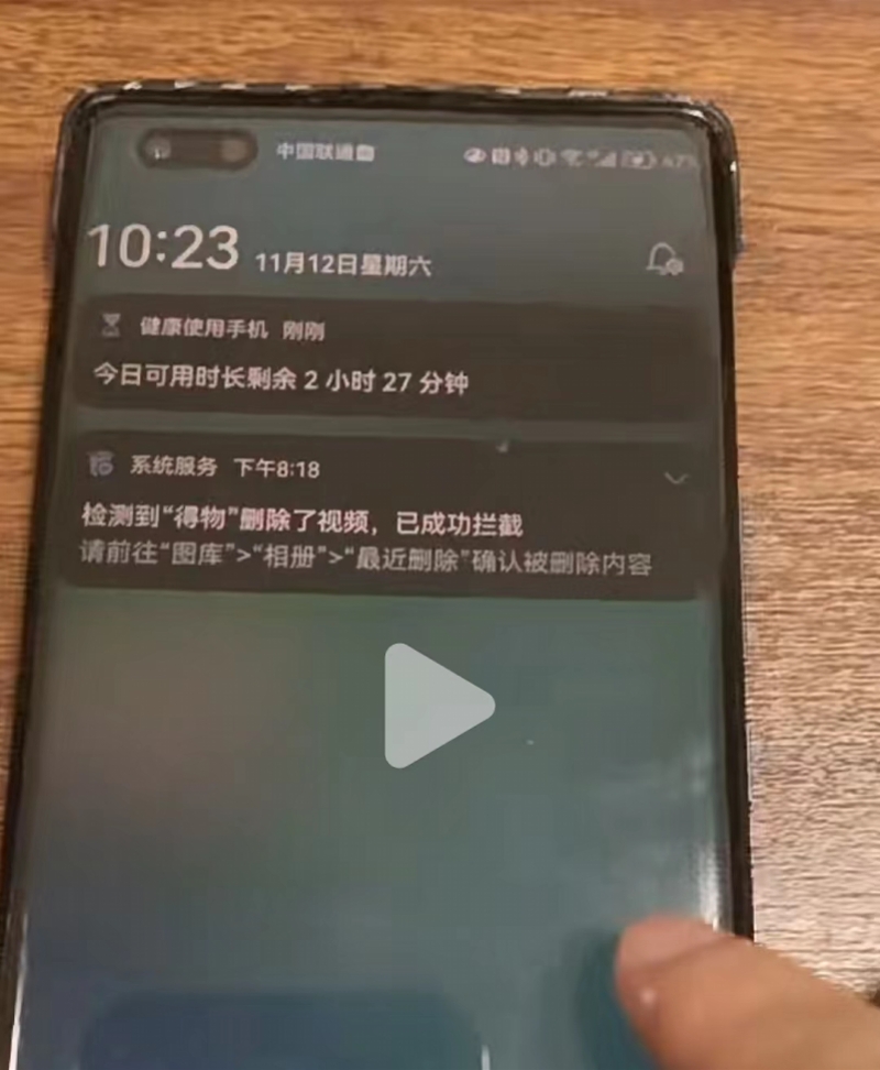 该网传视频显示,一名网友称自己双11在得物购买了商品,到货后发现商品存在问题,遂向得物反馈并在平台上传了相关视频凭据。其随后收到手机系统提示称,疑似提示得物私自调用其手机权限,删除了其拍摄的视频凭据。