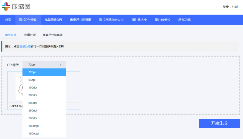 压缩图网站中的修改dpi功能,可以在线调整图片分辨率,支持批量处理,打开浏览器上传图片即可完成。