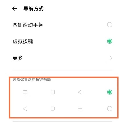 4、按自身习惯选择一个按键布局,点击右侧圆点即可成功设置返回键。