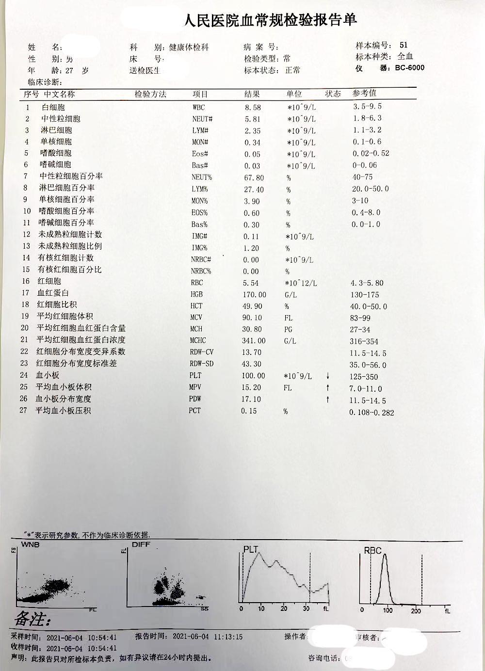 所以当医生给你开血常规检查的时候,不要觉得没必要,更不要觉得医院只是想挣你钱。
