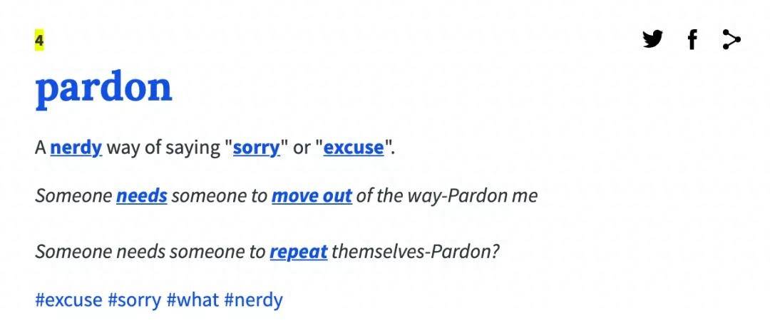 再参考下对潮流用语有着敏锐嗅觉的《美国俚语词典》(Urban Dictionary。看看美国的潮人们如何看待“pardon”:
