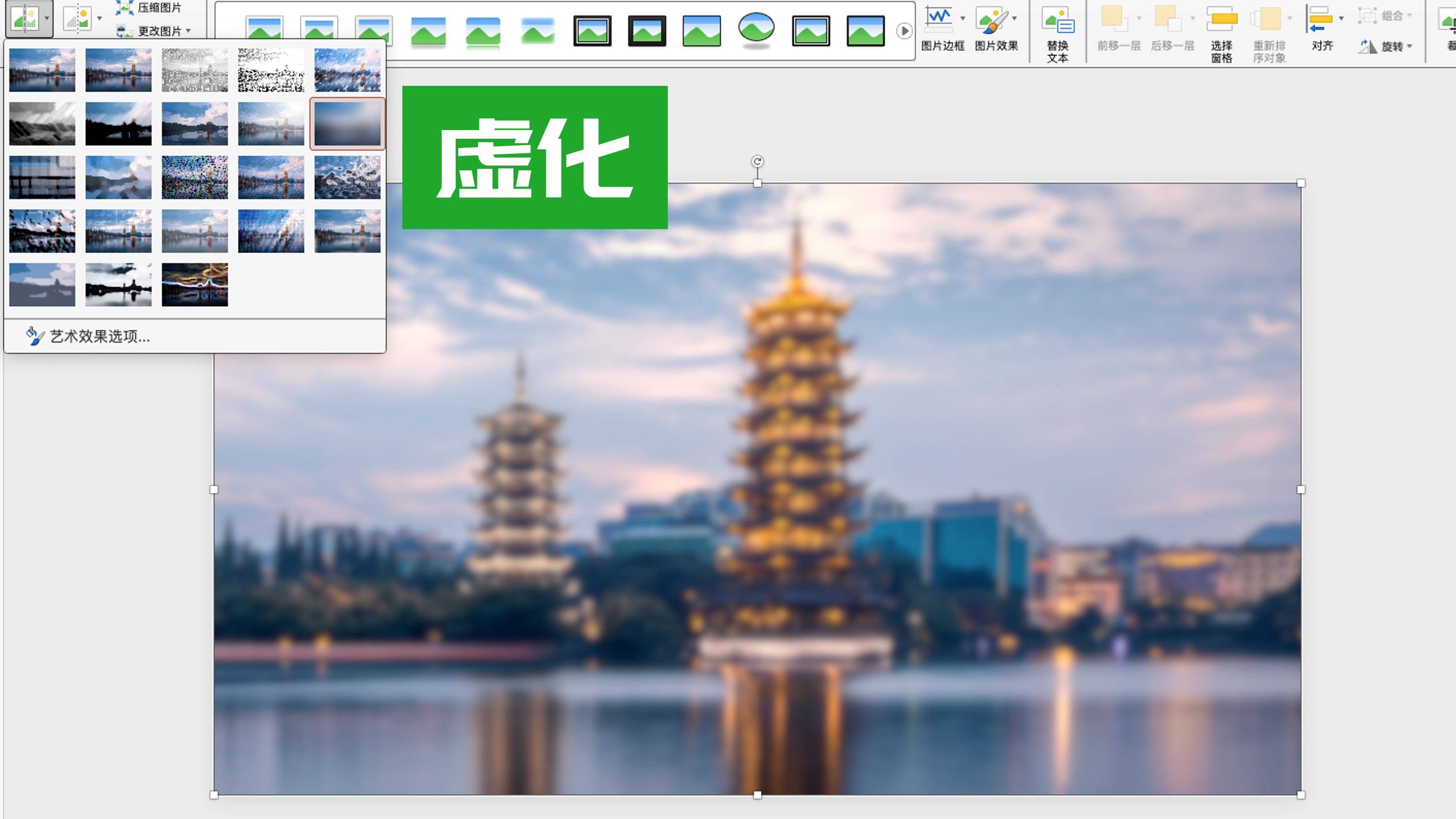然后点中图片→【图片格式】→【艺术效果】→【虚化】。