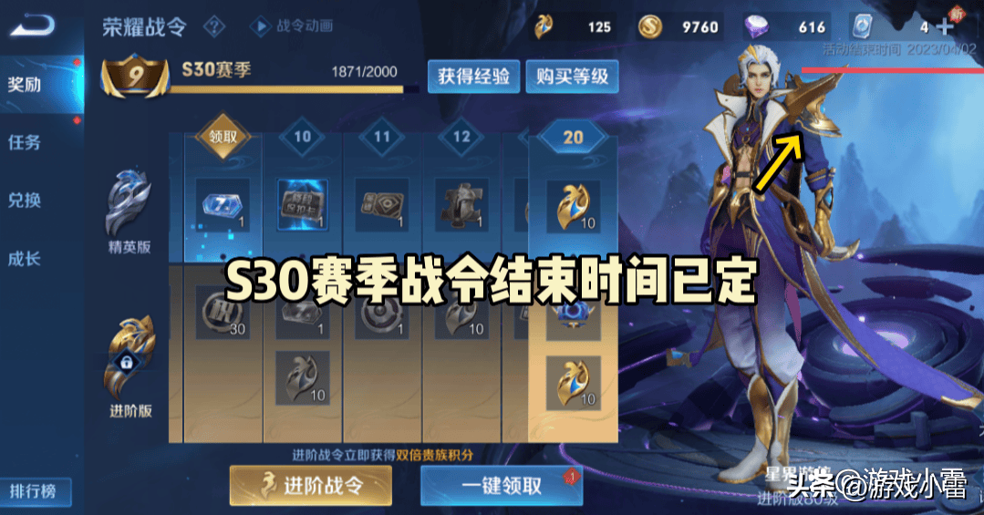 遵循前文所述,S30赛季在四月份的结束,小伙伴们可要掌握时间赶快排位到王者段位,除此之外,目前S31新赛季皮肤和战令皮肤的爆料也就是上文中的这些,也许后续官方会有所改动,但是改动也并不明显,小雷哥也会持续跟进官方的说辞。S30赛季四月结束,S31新赛季皮肤、战令皮肤爆料,小伙伴们你有什么看法呢?欢迎评论区下方留言讨论!更多王者荣耀最新游戏资讯,请关注雷哥游戏:游戏小雷。