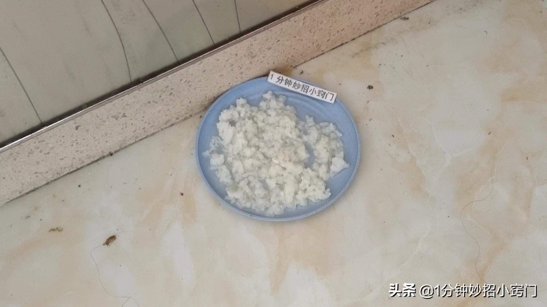 3.像平时,我们就可以把它放在角落处,或者蚂蚁经常出没的地段,米饭和白糖的气味,能够引诱蚂蚁过来觅食,里面洗衣粉碱性的成分,可以消灭蚂蚁,一旦蚂蚁过来吃了米饭,蚂蚁来多少,就灭多少,通通消灭干净。