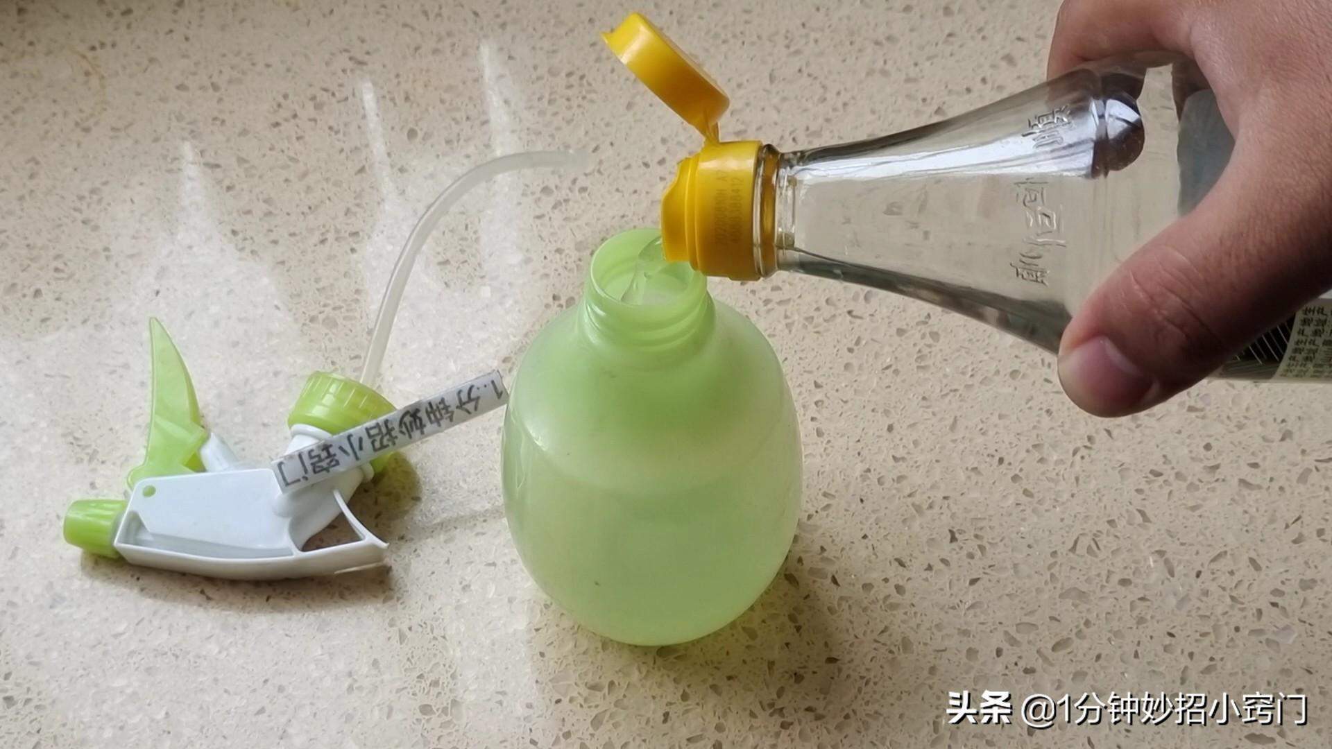 5.第三个方法,我们拿一个喷壶过来,在里面倒入适量的白醋。