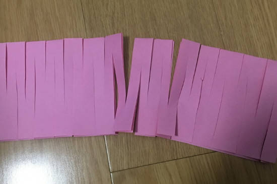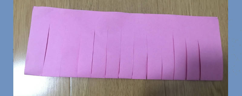 用剪刀在折痕这一边慢慢剪出条形,但是有几点需要注意:剪出的长方形要大小相等,如果实在不行就留2cm的宽度;不能一口气剪到底,否则圈会断,稍微几厘米就可以了;最边上的长条要留出安全距离,不能太粗也不能太细。