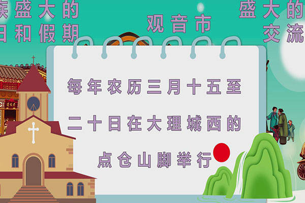白族的三月街也被叫做“观音市”,它是白族盛大的节日和假期,每年农历三月十五至二十日在大理城西的点仓山脚举行,最初的三月街带有宗教活动色彩,现在已经演变成一个盛大的物资交流会。