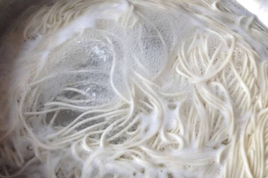 将锅内的水烧开至沸腾,加入面条后等水再次沸腾的时候撒少许食盐,煮10分钟左右就可以捞出锅了。