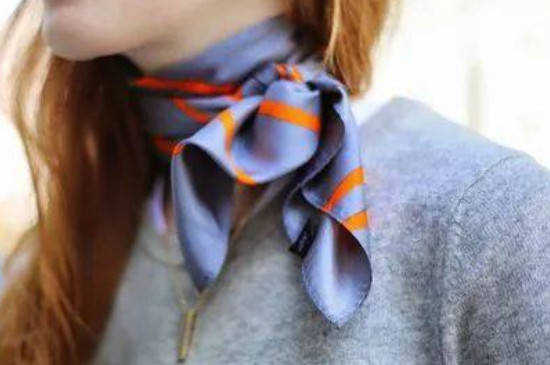 系丝巾可以先平铺折叠成风琴般的百褶,之后将卷好的丝巾围在脖子上并打成平结即可。此外也可以将丝巾平铺并将两个对角向中间卷起形成条状,之后将丝巾围在脖子上打两个活结也可以。