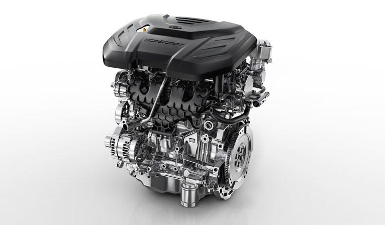 在缸体顶部,有一个带有双顶置凸轮轴的铸铝气缸盖,排气歧管与单涡管涡轮增压器作为一个整体制造,降低了生产成本,作为Ecoboost的核心,这台发动机进气门和排气门都具有可变正时,可以在最大功率和低转速扭矩之间取得平衡。