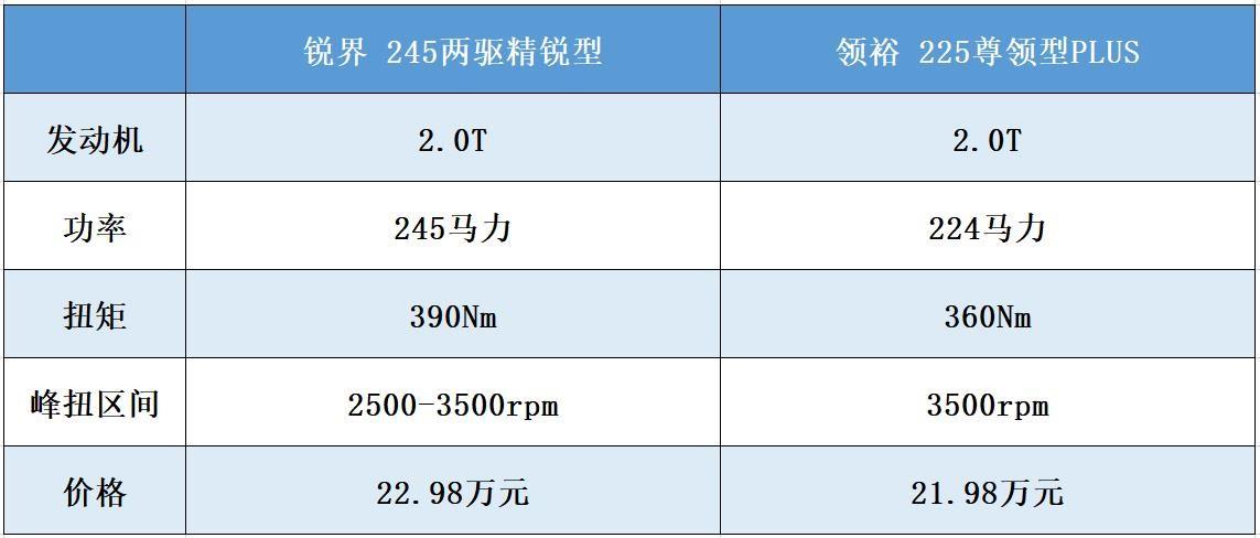 虽然福特领裕比锐界起价更低,但在同样价位下,发动机和变速箱组合明显不如锐界,两款车的差距也比较明显。