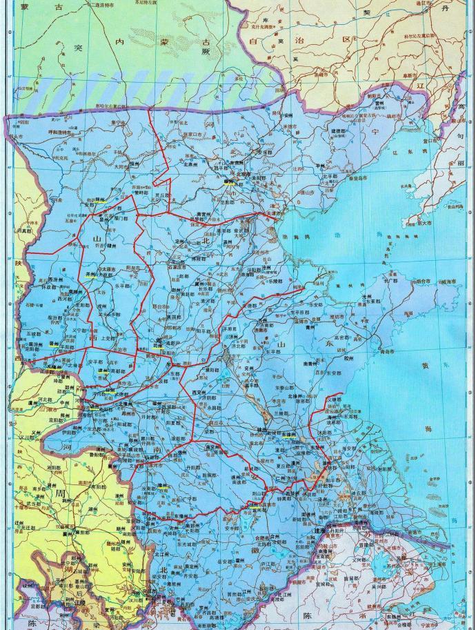 北齐继承了东魏所控制的地盘,占有黄河下游流域的河北、河南、山东、山西以及苏北、皖北的广阔地区。