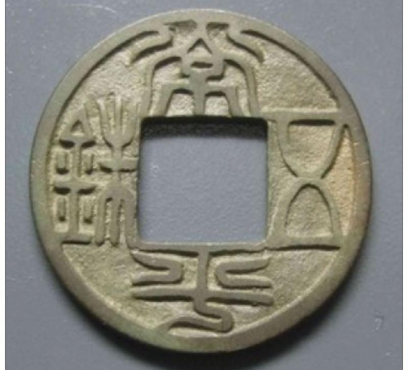 传世尚见一种背四决文小钱,另有厌胜钱数种。