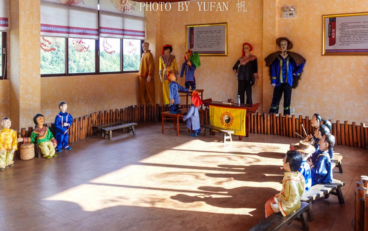 我们沿着弯弯曲曲的山路来到李工坑村的文化广场,边上最显眼的建筑是三层楼高的畲族文化展览馆,里面展示大量关于畲族同胞的图文资料,还有他们用过的一些生活用具。