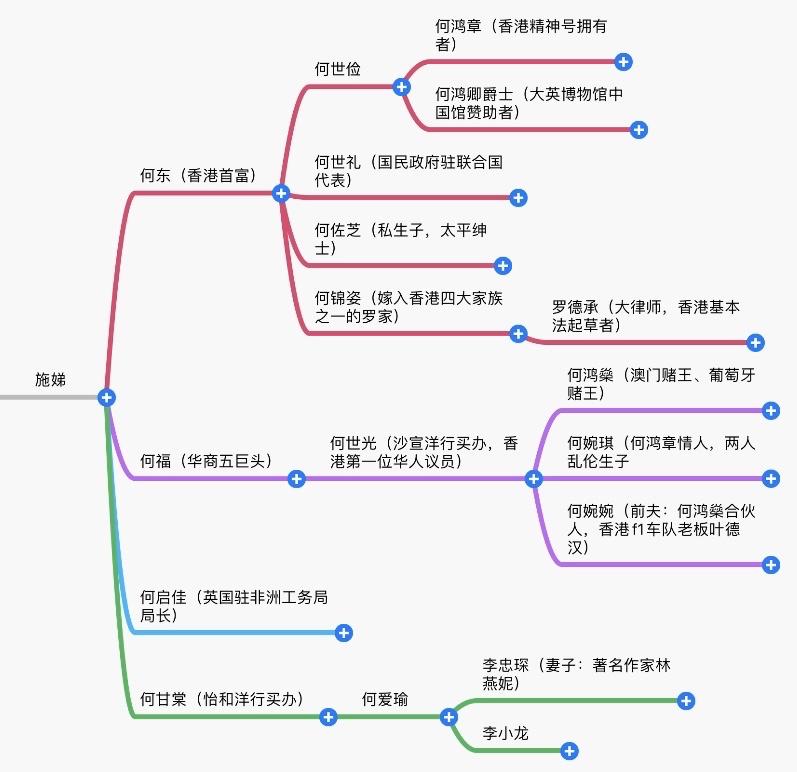 话再说回来。何仕文(富一代)在香港投资失败,所以从1859年抵达香港直至1873年离开香港,何仕文只在香港待了14年。他离开后,又恢复了“单身状态”的施娣嫁给了一个叫郭兴贤的中国人,生下儿子何甘棠。何甘棠有一个女儿名叫何爱瑜,而何爱瑜就是李小龙的母亲。但何爱瑜其实并不是何甘棠的亲生女儿,她是何甘棠与一名居住在上海的情人,本身是欧亚混血儿的张琼仙所收养的欧亚混血儿。