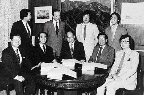 ▲左1是赌王的3哥何鸿展右1是赌王的父亲何世光。