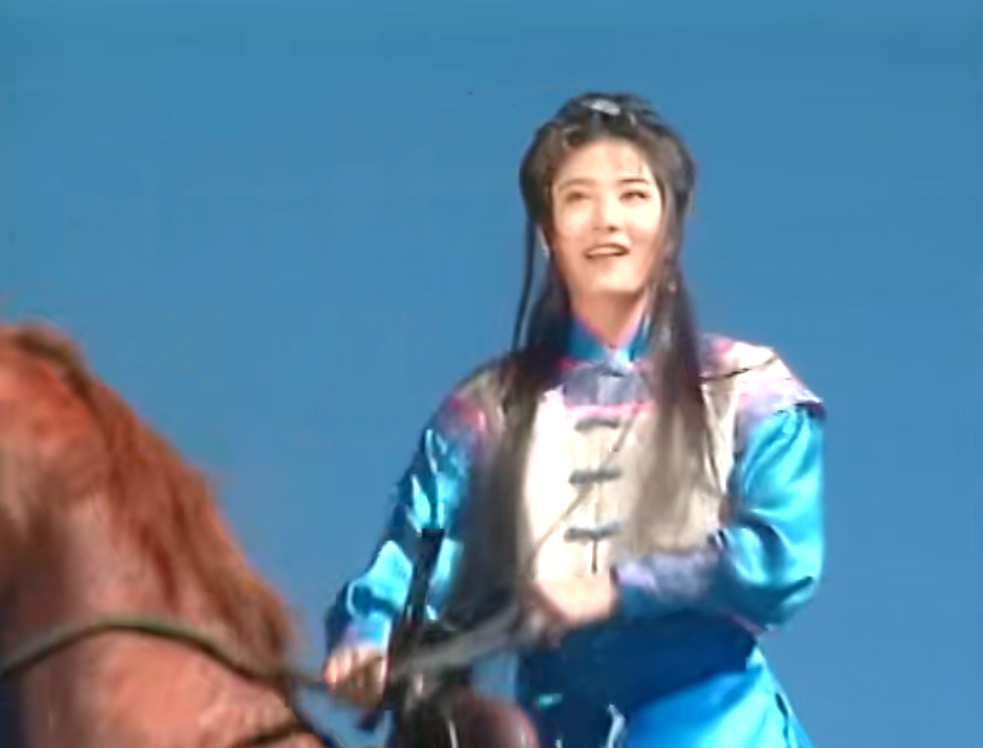 “天上白云飘荡,地上人儿马蹄奔忙,我为了一腔侠骨柔情,流浪走四方”,歌声中,赵燕翎骑着马从山坡上奔来,是1997年武侠剧《中原镖局》的开场画面。