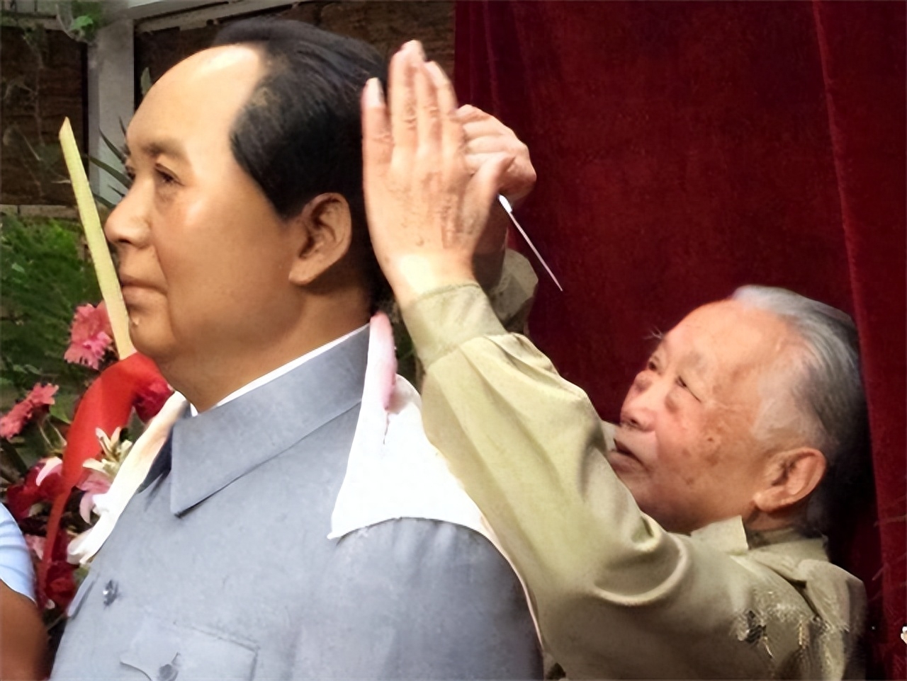 考虑到毛主席需要面见旁人,周福明还贴心地为主席洁面,并且完美避过脸上的痣。