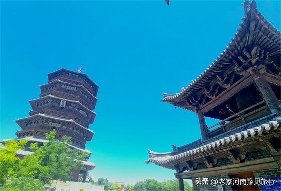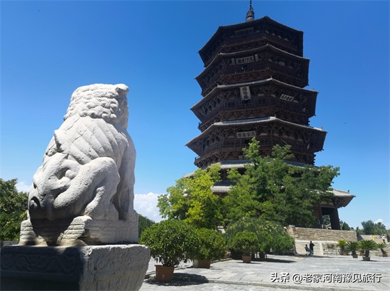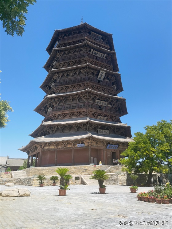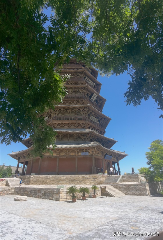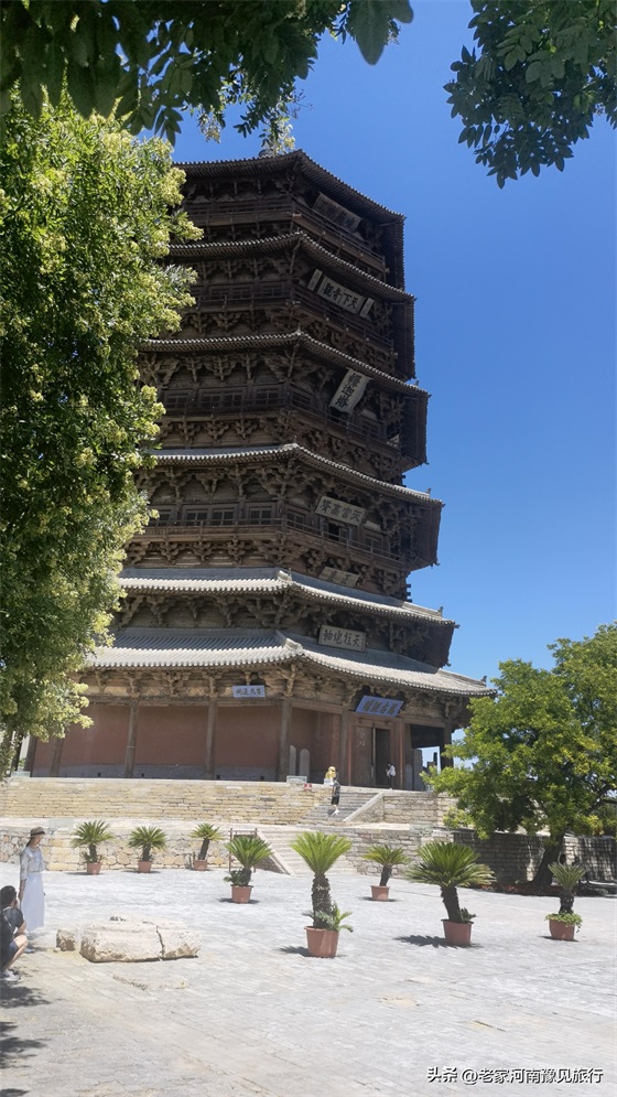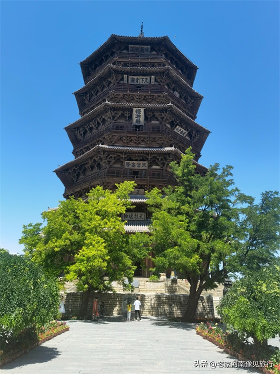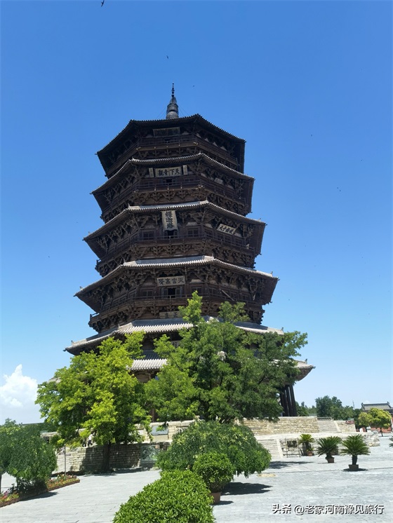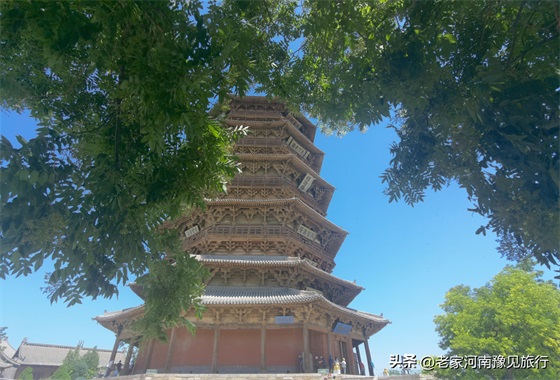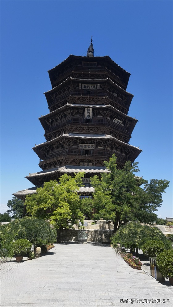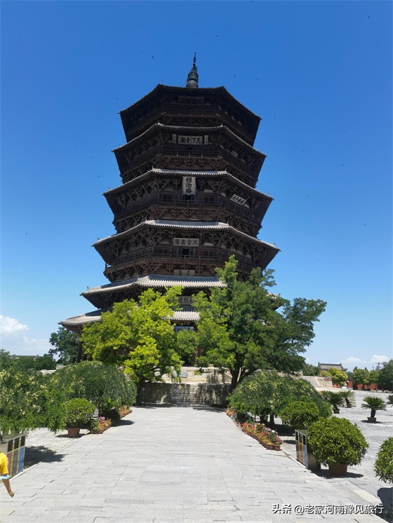 2、佛宫寺景区并不大,只有三进建筑:山门、木塔、大雄宝殿。如果只是看下塔,半个小时就足够。不过,我觉得,如果你到了木塔跟关,仰望这座千年木塔,你会发现30分钟,远远不够。
