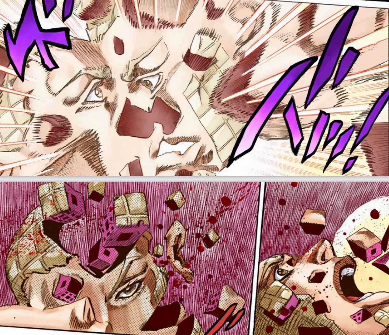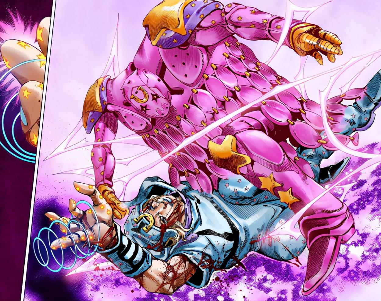SBR基本世界中,唯一能对大总统造成致命威胁的只有四阶段乔尼,牙4可以无视爱之列车的防护,直接撕开光壁冲进去殴打大总统;并且牙4可以施加无尽回旋的力量,不管大总统如何更换身体,回旋之力都会如影随形,永无止境地折磨着大总统。