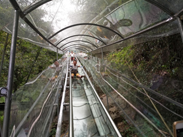 从瑞云山景区入口,一路往上走,大约步行30分钟,便可抵达滑道游玩处。在滑道终点处,从下往上望,透明的玻璃滑道彷如长龙般蜿蜒盘旋在山林间。滑道里,不时有游客从中极速滑过,发出阵阵呐喊声、尖叫声。滑道上有6个拐弯点,还设置了缓冲带,用于减速保证安全。不少参与体验的游客,对滑道的刺激、有趣连连点赞。