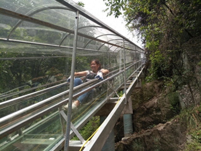 上个月末,涵江区大洋乡瑞云山森林公园内,福建首条高空全透明纯玻璃滑道正式开放营业,来自福州、厦门、泉州等各地市的2000多名游客慕名前来体验这一惊险、刺激的项目。