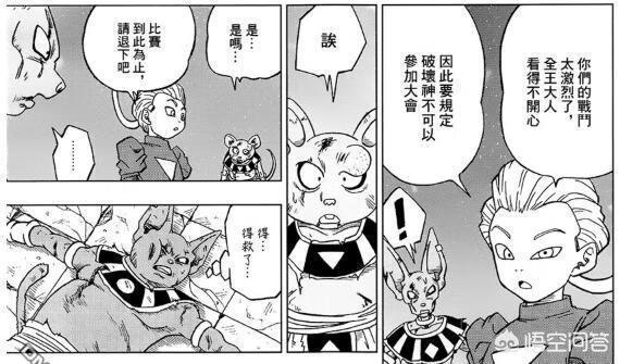大神官则表示理解,所以下令破坏神停止比武,随后安排了悟空VS拖破的比武让全王看,全王则非常满意,因为可以跟得上两人的水平,看到津津有味。