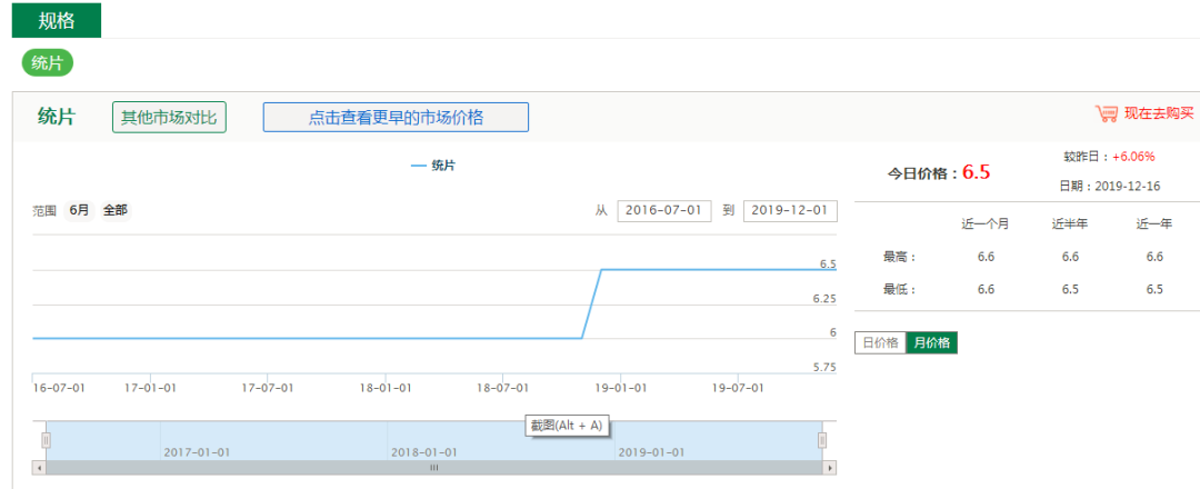 从图中可以看出红藤价格近5年都是呈小幅度上涨趋势,今年7月份开始上涨幅度较大,当前价格为7.5元/公斤并且还在不断上升。