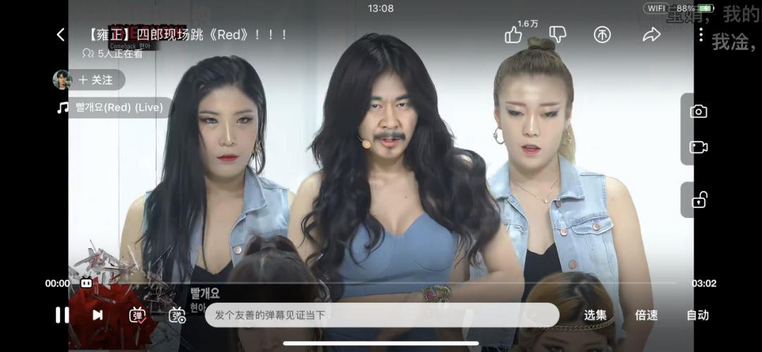 ▲图为B站“【雍正】四郎现场跳《Red》”视频截图