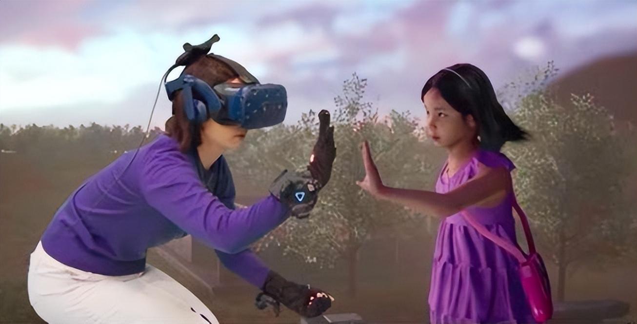 ▲图为韩国一位母亲通过虚拟现实、人工智能等技术,与去世了3年的女儿“再次”相见
