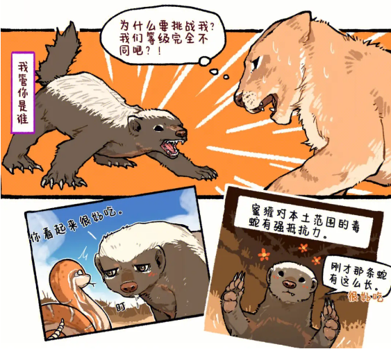 更何况人家蜜獾也不傻,要真遇到鬣狗群和狮群,肯定不会跑上去跟人家干架。