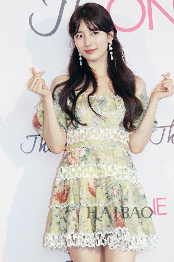 裴秀智2018年5月25日身着Zimmermann露肩印花连衣短裙,佩戴Gateless耳环出席自己在香港首个歌迷见面会的记者会