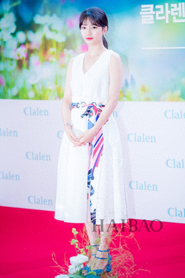 裴秀智身着璞琪 (Emilio Pucci) 白色连衣裙搭配Salondeju方跟凉鞋现身品牌活动