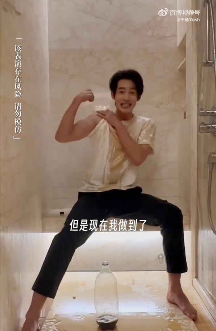 #于适的龙吸水步骤好严谨##于适就是自己想玩龙吸水吧# 一共2分16秒的龙吸水视频,从投放薄荷糖到吸水结束,不超过20秒,但于适拍了一整个严谨步骤,视频上也标注了注意事项~