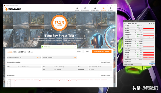 3DMark稳定性测试通过率97.2%,及格分数吧,不同机器跑分也不一样,大家到手测测看