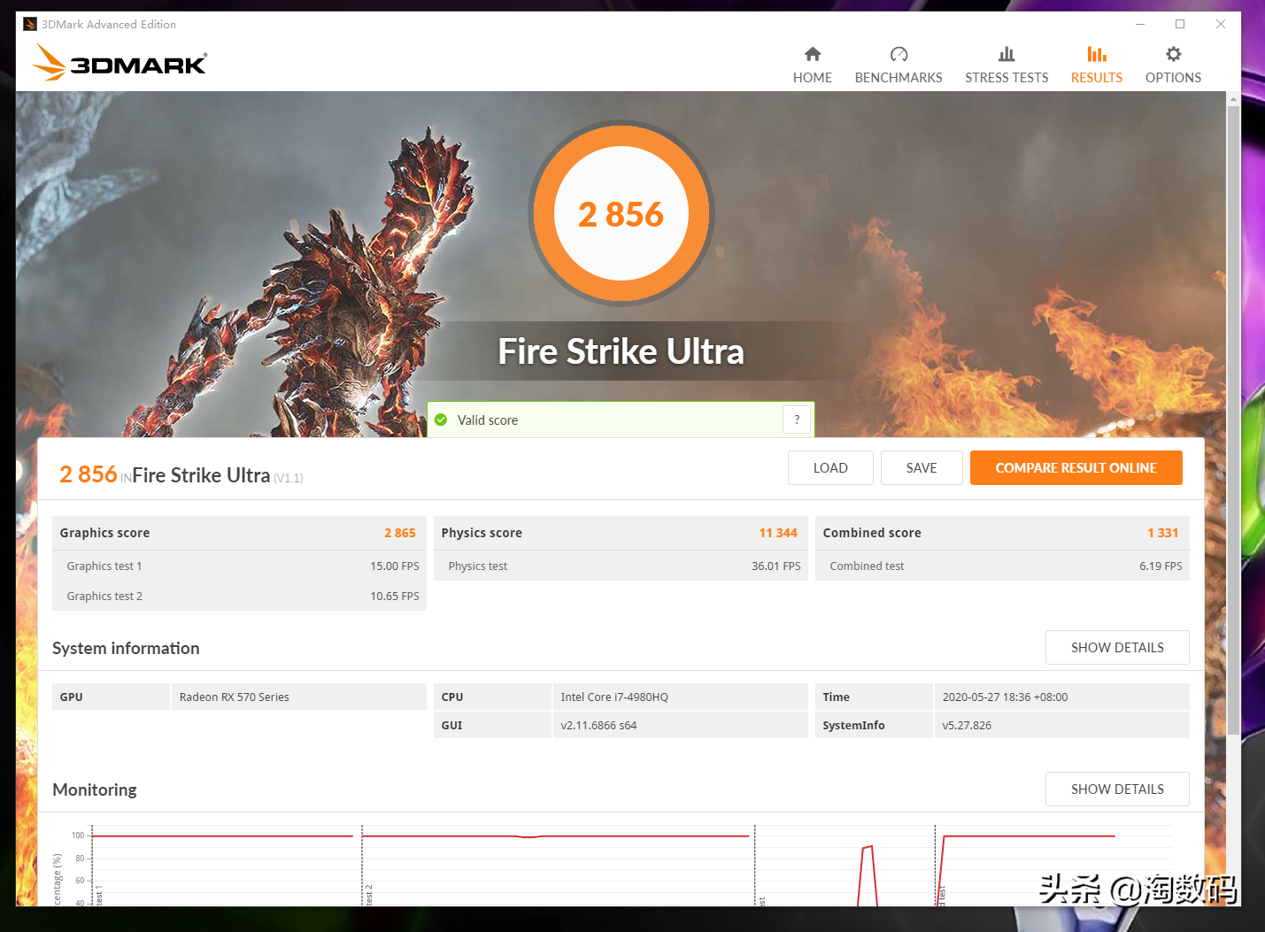 抱歉跑分时候凌晨京东59秒杀的超频三东海X4炫光到了,一直在开箱检查,忘记开GPU-Z后台监控了~ 哈哈,最后多跑了一遍TSE截图╮(╯▽╰)╭