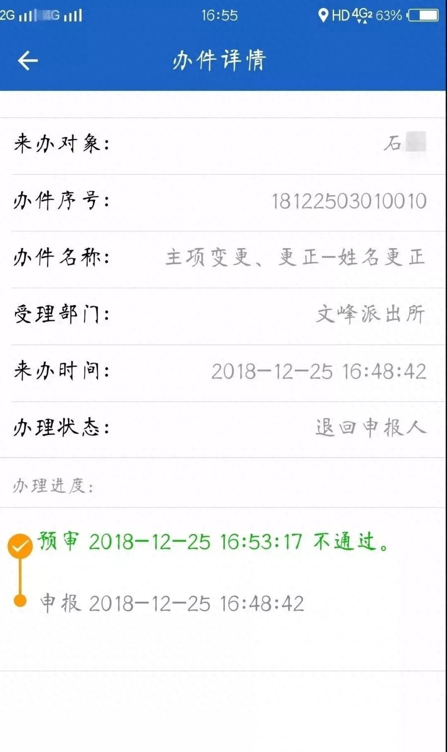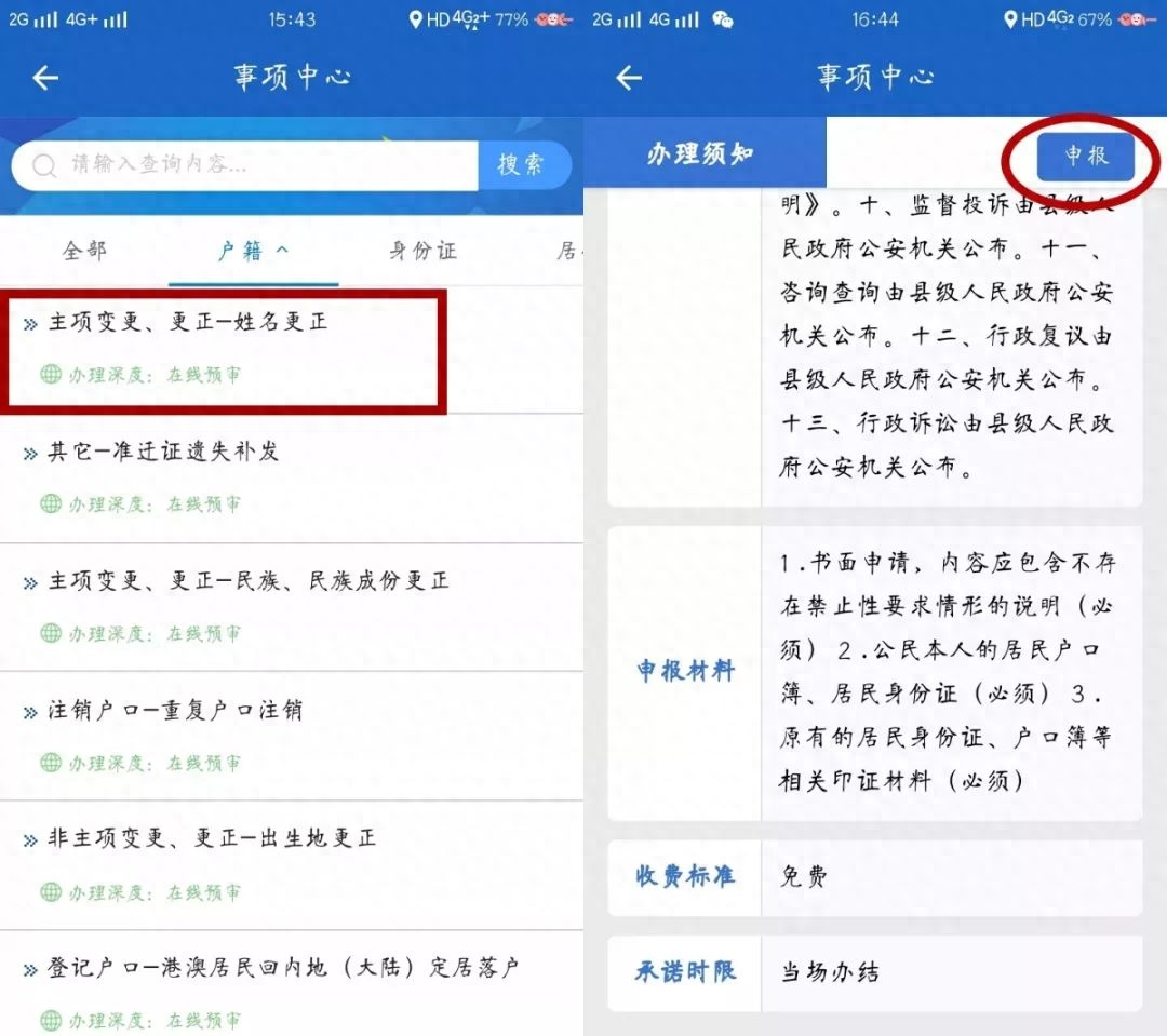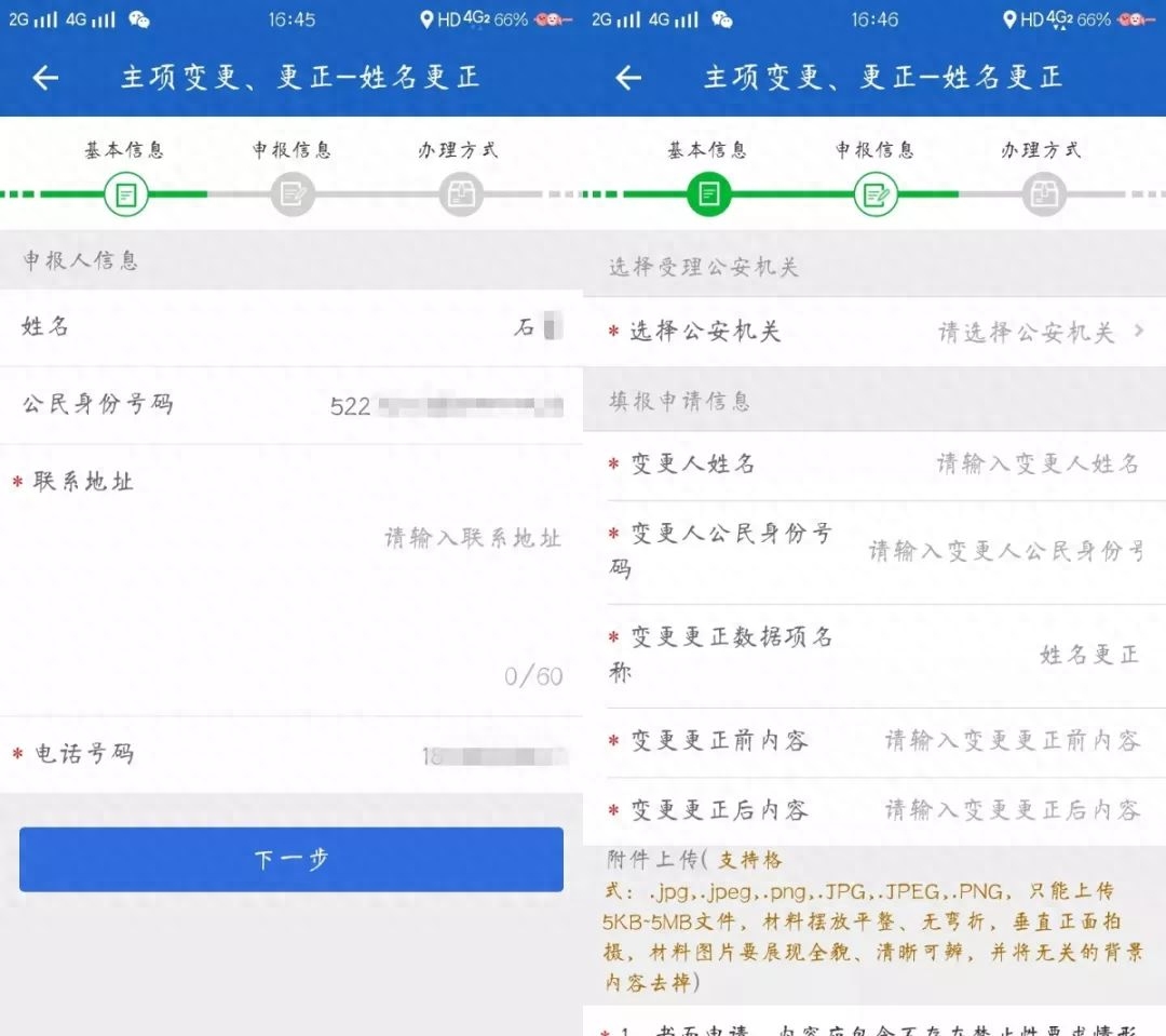 以户籍业务中的姓名更正为例,具体操作步骤如下:
