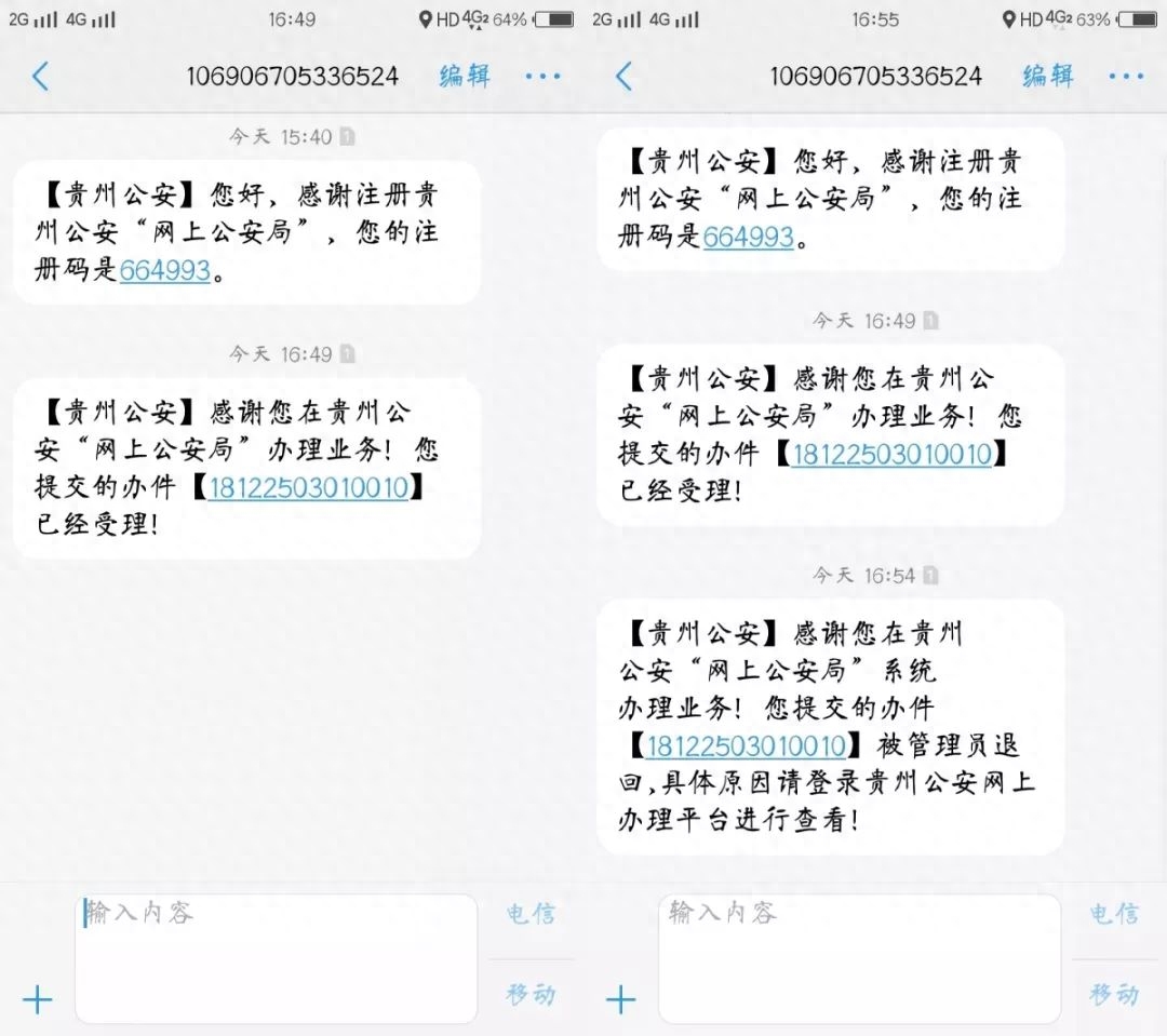 目前已上线交警、户籍、出入境、居住证、治安这5类业务,贵州群众可以进入“办事大厅”进行办理,可以查看详细的办事流程和所需资料,办理完成审核通过或者没有通过审核都会有短息提醒,还能在“个人中心 — 我的办件”中查看具体未通过的原因,节省了群众办理相关业务的等待时间。