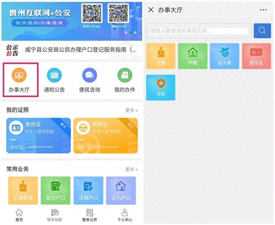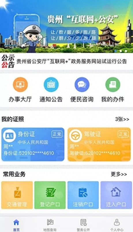 经过两个多月的试运行,从2019年3月1日起,贵州全省范围内通过贵州公安APP可以受理交警、户籍、出入境、居住证、治安等业务。