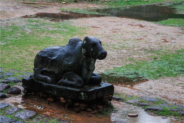 李冰镇水兽据《蜀王本纪》、《华阳国志·蜀志》等史料记载,秦朝的蜀守李冰在修建都江堰时,曾经下令雕刻了5只石犀,两头运到了成都,另外3头则在灌县的江中,石兽的耳朵、眼睛、下颔和鼻部清晰可辨,局部装饰卷云图案,四肢短粗,身体浑圆,石兽由整块的红砂岩雕刻而成。